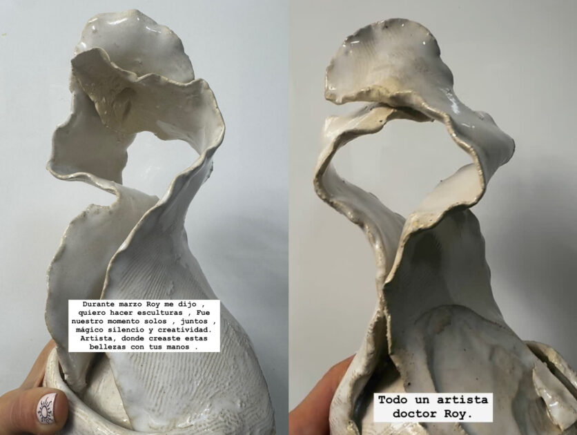 “Durante marzo Roy me dijo ‘Quiero hacer esculturas’. Fue nuestro momento solos, juntos, algo mágico, silencio y creatividad, donde creaste estas bellezas con tus manos”, relató.