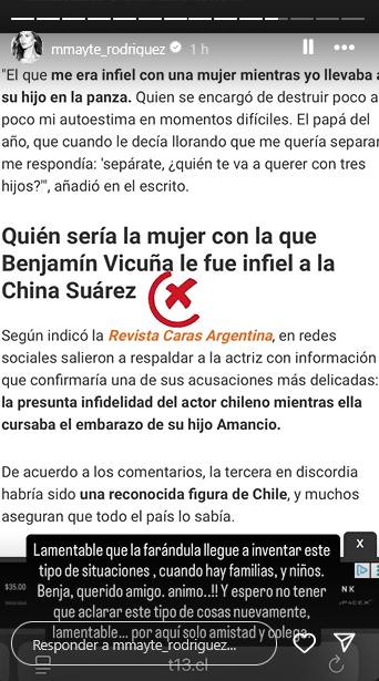 Mayte Rodríguez alzó la voz tras ser sindicada como la supuesta amante de Benjamín Vicuña.