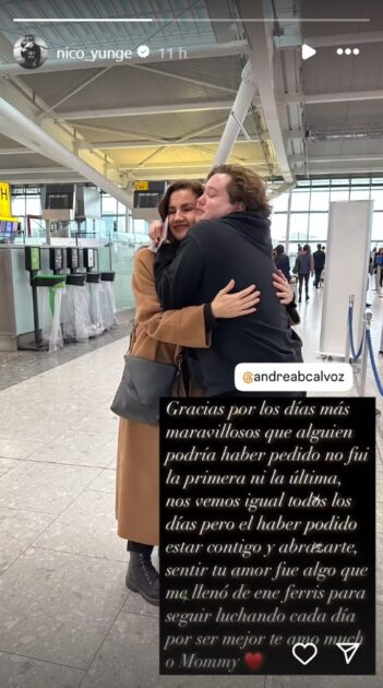 Tras esa publicación compartida en Navidad, Nico Yunge exhibió otra imagen junto a Andrea, en esta oportunidad, despidiéndose en el aeropuerto.