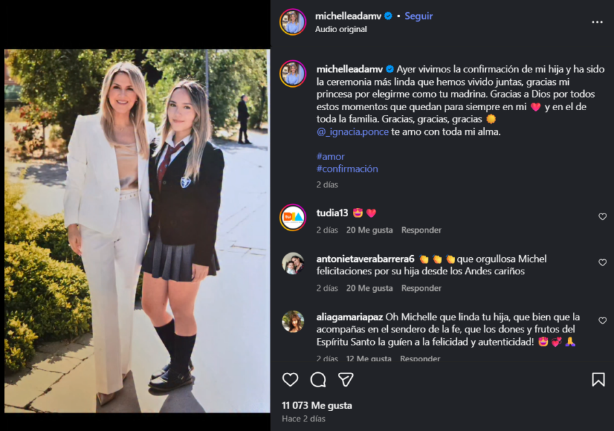 “Ayer vivimos la Confirmación de mi hija y ha sido la ceremonia más linda que hemos vivido juntas, gracias mi princesa por elegirme como tu madrina”, comenzó el mensaje.