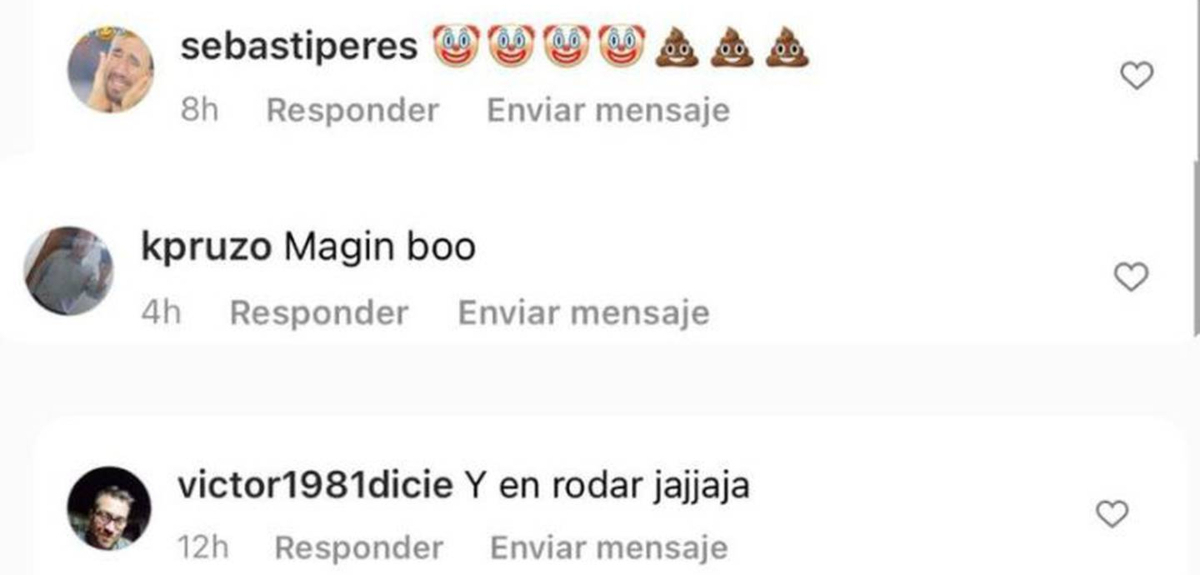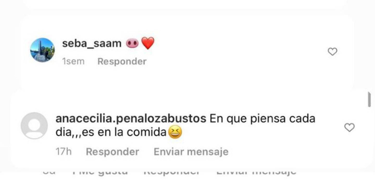 “En qué piensas cada día, es en la comida”, “Te faltó poner que te encanta comer”, dicen algunos de los comentarios que compartió Carvalho en sus stories, mientras que otros colocan emojis de cerdito o directamente la insultan.