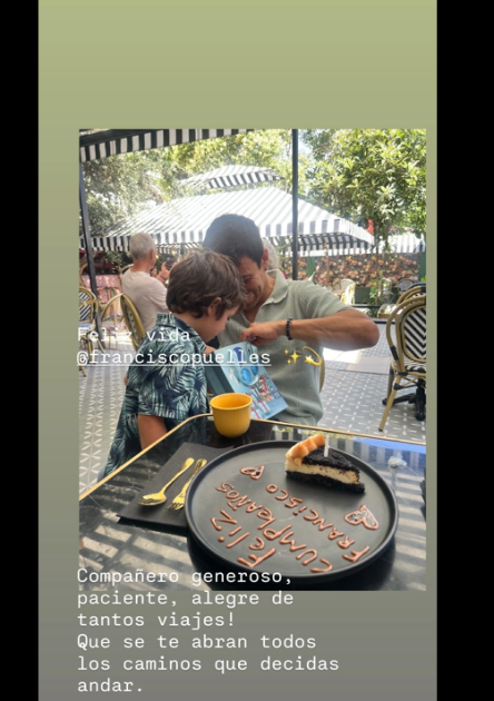 “Feliz vida, Francisco”, partió señalando en una historia donde aparece el actor abriendo un regalo junto a su primogénito, evidenciando que celebraron todos juntos en un local.