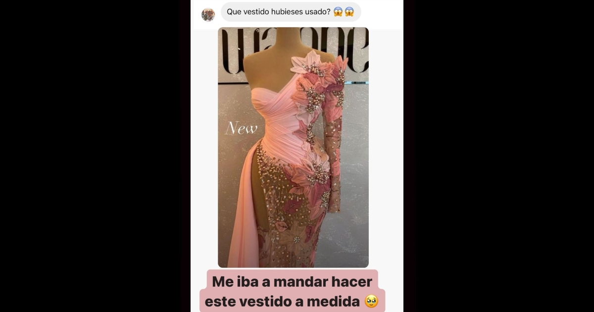 “Me iba a mandar a hacer ese vestido a medida”, comentó en la publicación, donde mostró un vestido rosado con transparencias y grandes flores del mismo color.