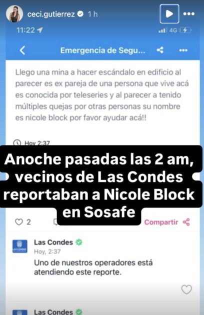 “Llegó una mina a hacer escándalo en el edificio. Al parecer es una expareja de una persona que vive acá”, se lee en el reporte compartido por la periodista.