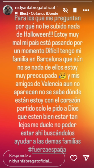 Nidyan Fabregat y su preocupación por devastador temporal en España: “Mis amigos aún no aparecen”