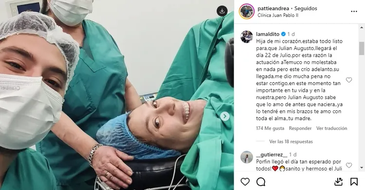 “Hija de mi corazón, estaba todo listo para que Julián Augusto llegará el día 22 de julio, por esta razón la actuación a Temuco no molestaba en nada, pero este crío adelantó su llegada”, sostuvo la animadora.