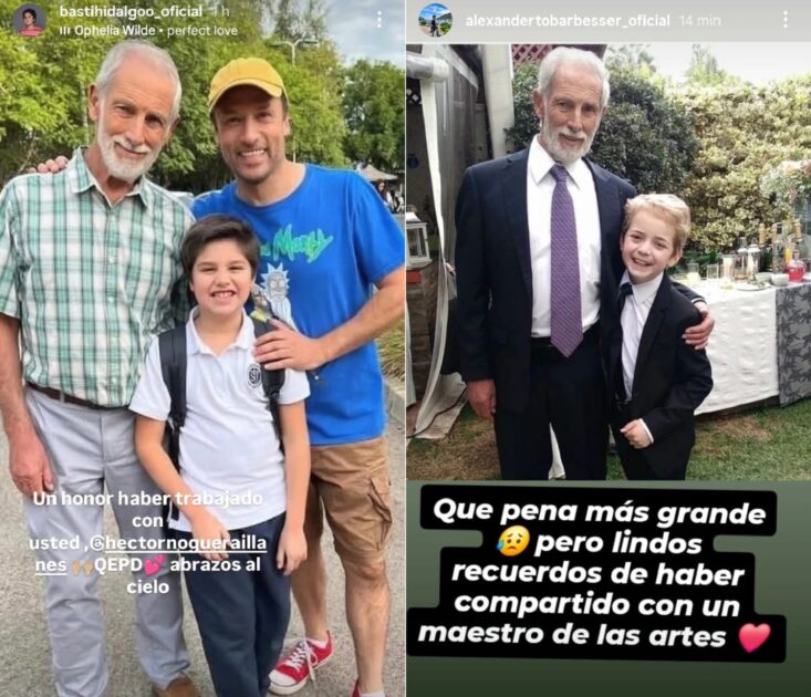 “Un honor haber trabajado con usted, Héctor Noguera. QEPD. Abrazos al cielo”, fue el mensaje que publicó Bastián, junto a una imagen donde posa con Tito y con Andrés Velasco, que era su papá en la teleserie.