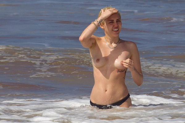 ¡Otra vez!: Miley Cyrus es sorprendida en topless en paradisíaca playa