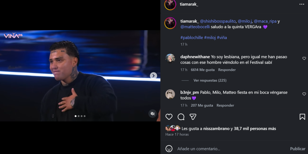 Tal como mostró una cuenta de humor en Instagram, una usuaria, identificada como parte de la comunidad LGBTQ+, no contuvo sus elogios hacia el intérprete chileno.