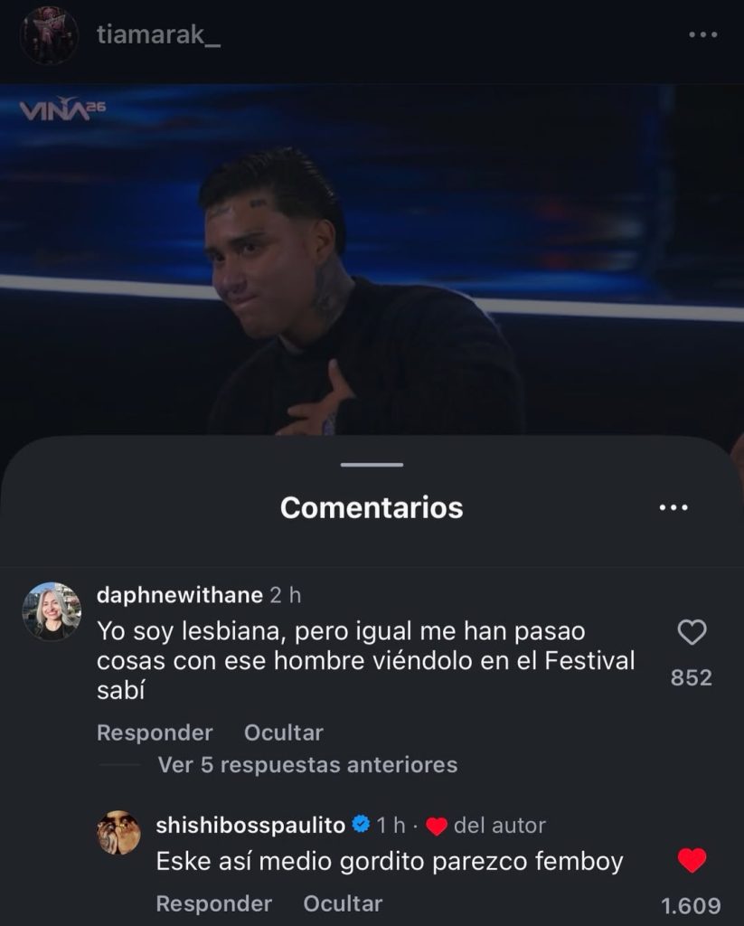 “Yo soy lesbiana, pero igual me han pasao cosas con ese hombre viéndolo en el Festival, sabí…”, escribió la usuaria.