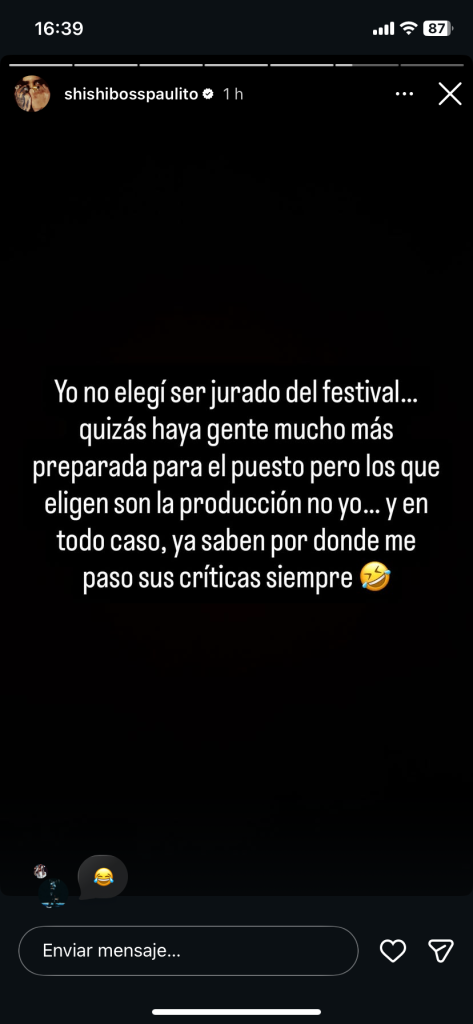 Con estas palabras, el cantante dejó en claro la escasa importancia que le otorga a los cuestionamientos, reafirmando su postura irreverente frente a las críticas y su rol en el certamen musical más importante del país.