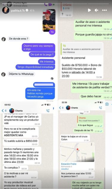 Sobre las ofertas laborales, el cantante presentó capturas de campaña que daban cuenta que el hombre, tras llamar la atención con sus fotos, se presentaba como productor musical indicando que necesitaba dos tipos de cargo.