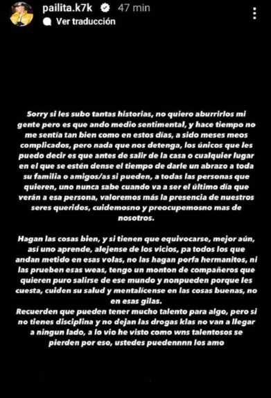 Pailita realizó potente reflexión en medio de duro presente familiar: “Ando medio sentimental”