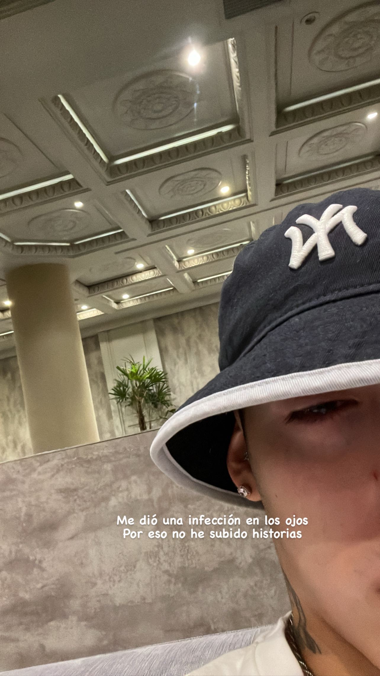 “Por eso no he querido subir historias, ni nada, no quiero mostrar este caracho. El ojo me lagrimea todo el día”, contó en un video en sus historias.