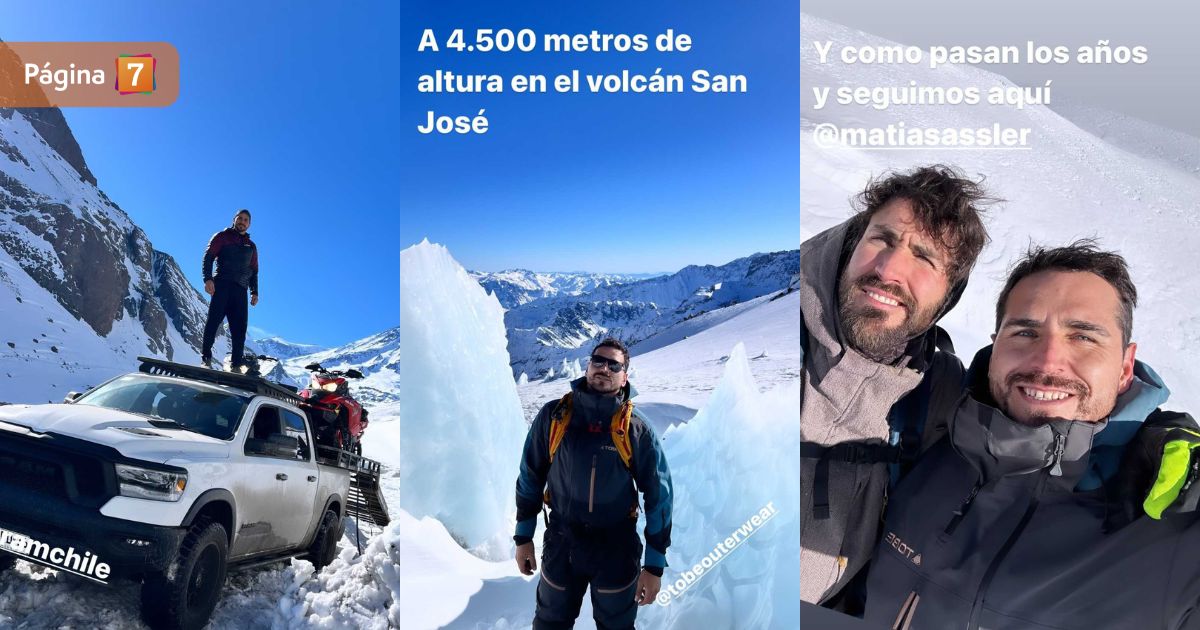 “A 4.500 metros de altura en el Volcán San José“, escribió Andrade en sus historias de Instagram, junto a una foto de él mismo en medio de la nieve.