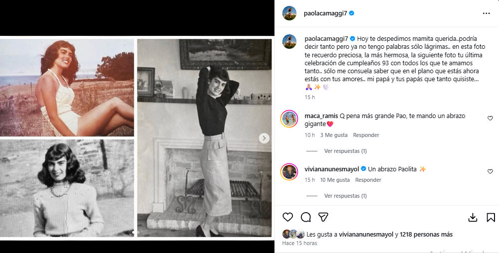 En el mismo texto, la diseñadora expresó que “solo me consuela saber que en el plano que estás ahora, estás con tus amores: mi papá y tus papás que tanto quisiste”.