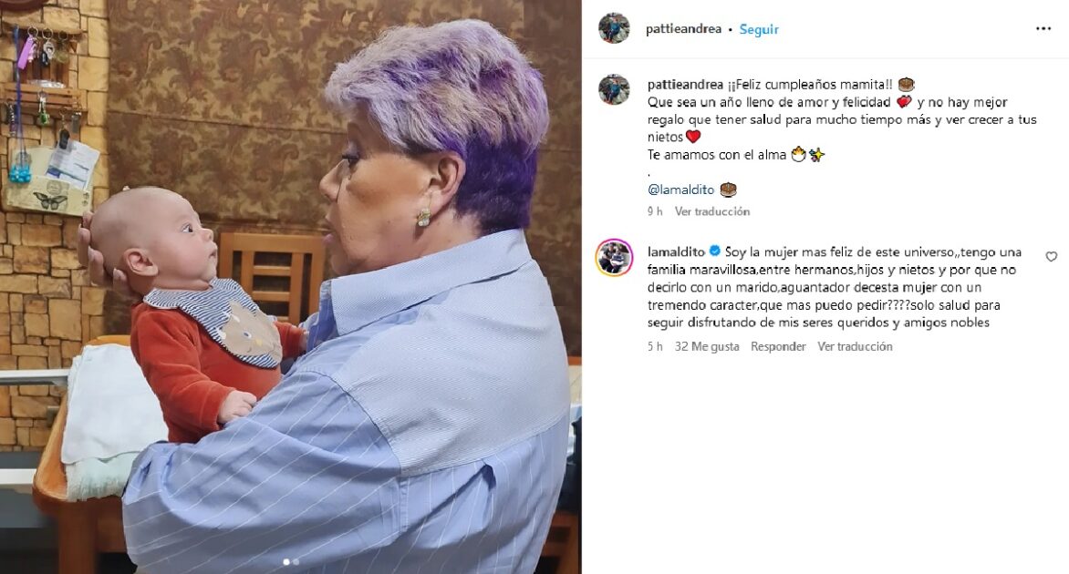 Usando su cuenta de Instagram, la mujer dedicó un mensaje a su madre, y compartió una foto donde aparece sosteniendo en brazos a su pequeño nieto.
