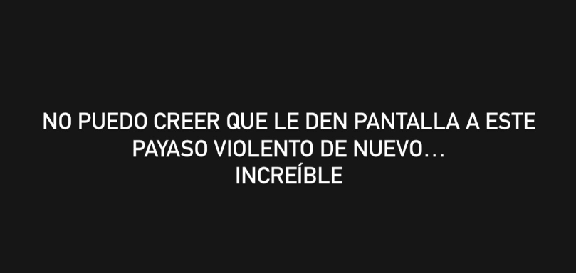 “No puedo creer que le den pantalla a este payaso violento de nuevo… increíble”, sostuvo.