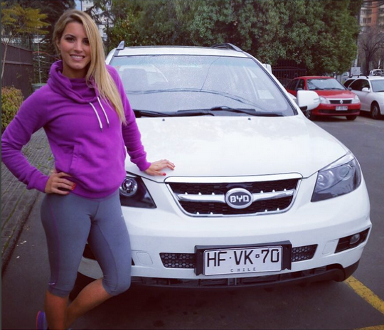 “Terminando las grabaciones de hoy para #FoxFit en mi nuevo S6 de @byd_chile”, fue el mensaje junto a una foto en la que reveló su “joyita” cero kilómetro y de un blanco pulcro.