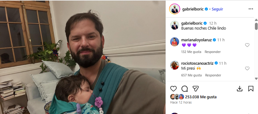“Mi presidente”; “Muero de amor”; “Es que son muy lindos”; “Muchos abrazos a Violetita”; “Qué imagen más tierna”; “El papi de Chile”, fueron algunos de los escritos.