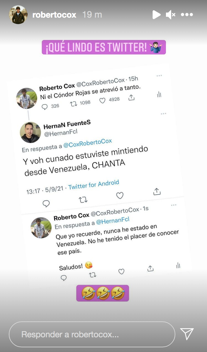 El periodista Roberto Cox respondió a las críticas que ha recibido en las últimas horas en Twitter, producto de un comentario que realizó en dicha red social sobre la polémica del convencional constituyente, Rodrigo Rojas Vade.