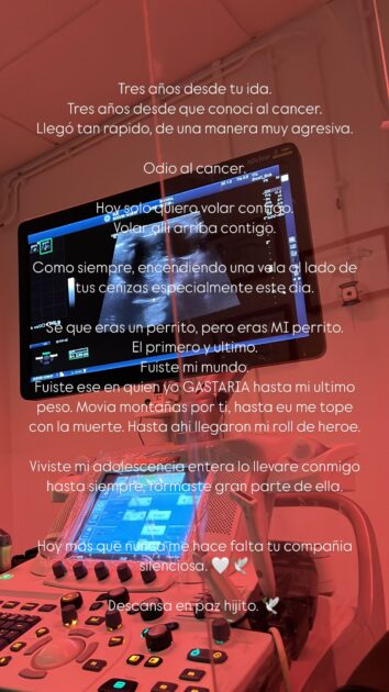 “Tres años desde tu ida. Tres años desde que conocí al cáncer. Llegó tan rápido, de una manera muy agresiva. Odio al cáncer”, comenzó el mensaje.