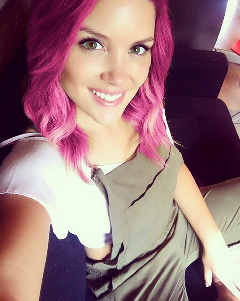 En la instantánea Vallejos aparece con su pelo teñido color rosa, dejando atrás su clara y característica cabellera. Junto a la publicación la ex Aquí mando yo escribió la siguiente pregunta: ¿Qué dicen de mi new look?.