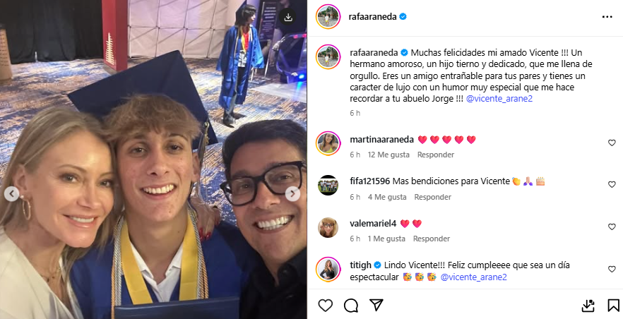 Con tiernas publicaciones en redes sociales, Rafael Araneda y Marcela Vacarezza festejaron los 19 años de su hijo Vicente.