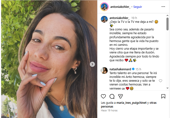 La periodista Antonia Kohler confirmó la noticia en sus redes sociales con un sentido mensaje. “¿Dejo la TV o la TV me deja a mí?”, partió escribiendo.