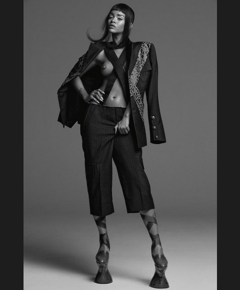 Leer más: http://www.lavanguardia.com/de-moda/moda/celebrities/20150218/54427359383/rihanna-posa-en-topless-en-homenaje-a-alexander-mcqueen.html#ixzz3S6Vhb5W0