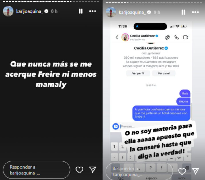 Karina Valenzuela, la supuesta amante de Sergio Freire, desató toda su furia en contra de Maly Jorquiera, esposa del comediante, y de Ceci Gutiérrez, periodista que destapó la infidelidad.