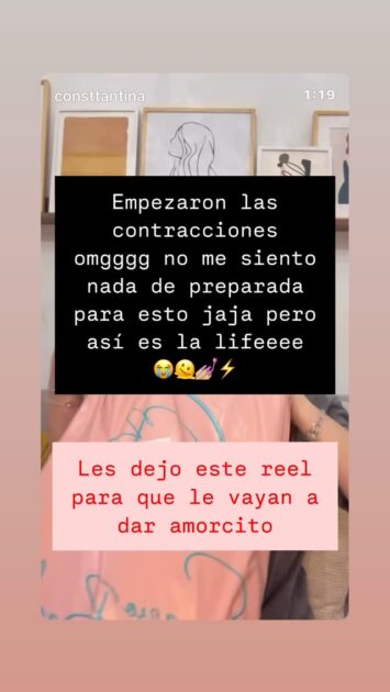 “Empezaron las contracciones, no me siento nada de preparada para esto jaja, pero así es la vida”, expresó en una de sus historias en Instagram.
