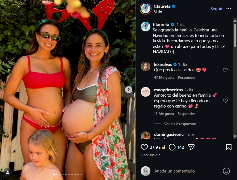 “Se agranda la familia. Celebrar una Navidad en familia, es tenerlo todo en la vida. Recordamos a lo que ya no están. Un abrazo para todos y ¡Feliz Navidad!”, escribió Tita Ureta en la red social que suma más de 700 mil seguidores.