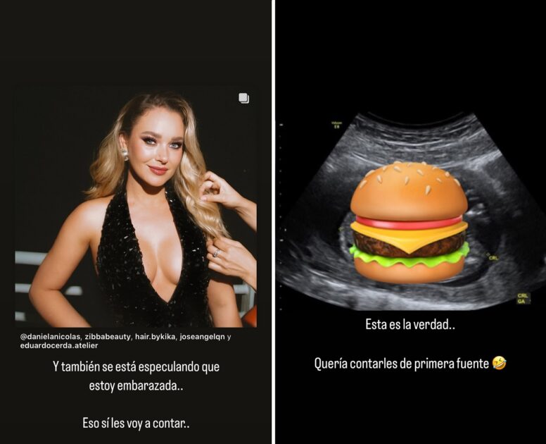 En esa publicación, sumó la imagen de una ecografía donde aparecía el emoji de una hamburguesa, descartando la espera de un bebé.