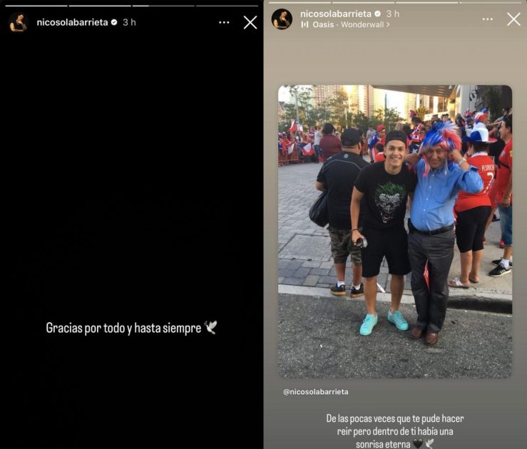 En la imagen, Nico aparece sonriente junto a su abuelo, rodeados de hinchas de la selección chilena: “De las pocas veces que te pude hacer reír, pero dentro de ti había una sonrisa eterna”, escribió.