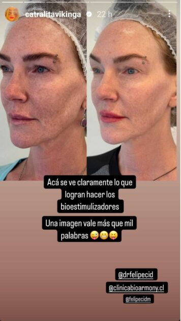 “Acá se ve claramente lo que logran hacer los bioestimuladores”, escribió Catalina Pulido junto a la foto en la que se compara su imagen después de la intervención estética.