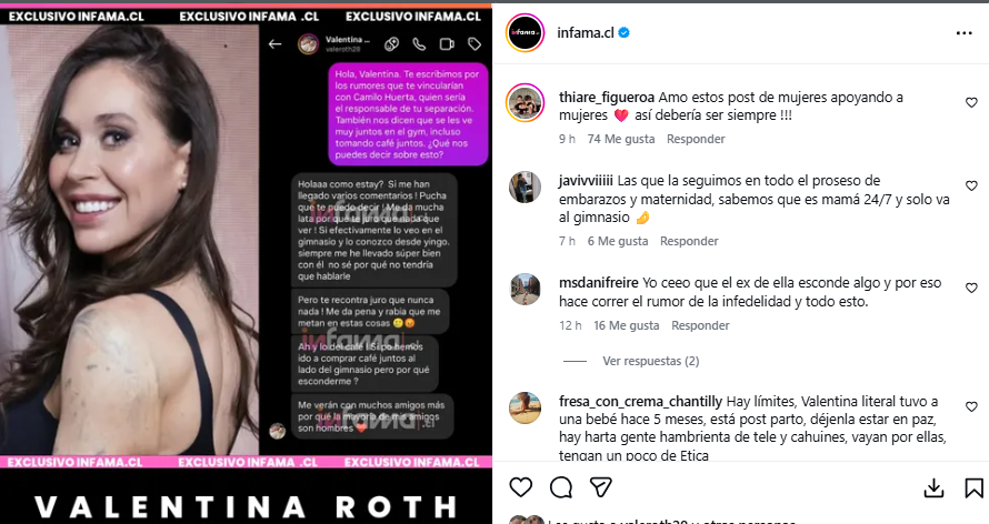Vale Roth alzó la voz y negó tajantemente los rumores de que habría sido infiel a su exesposo con Camilo Huerta.