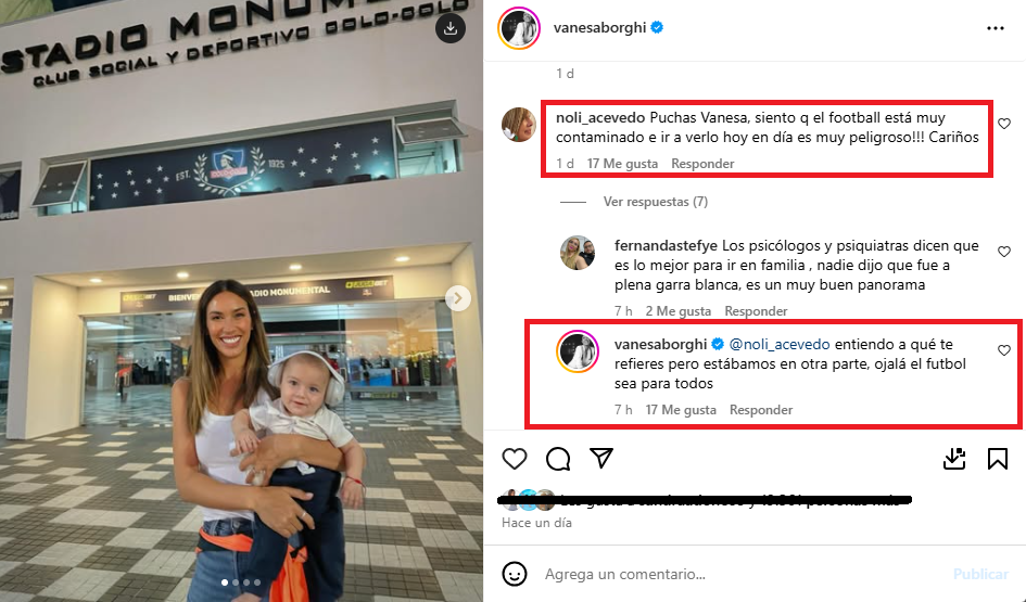 En la misma publicación, una usuaria criticó su salida al estadio junto a su hjio, argumentando que era muy peligroso.