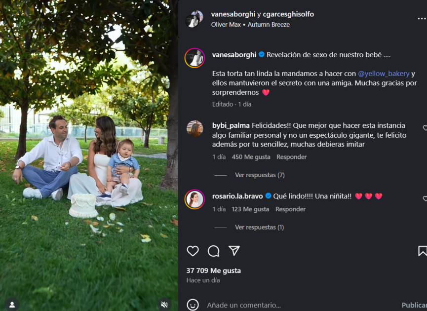 Cabe señalar que Borghi y su familia recibieron múltiples comentarios de felicitaciones y buenos deseos, por este especial momento de su vida.