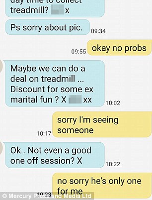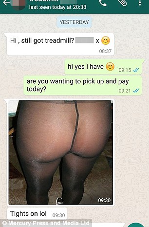 De la nada, y luego de recalcar largamente que tenía un marido que iría a buscar la trotadora que estaba comprando, la mujer le envió una imagen usando nada más que unas medias semi transparentes.