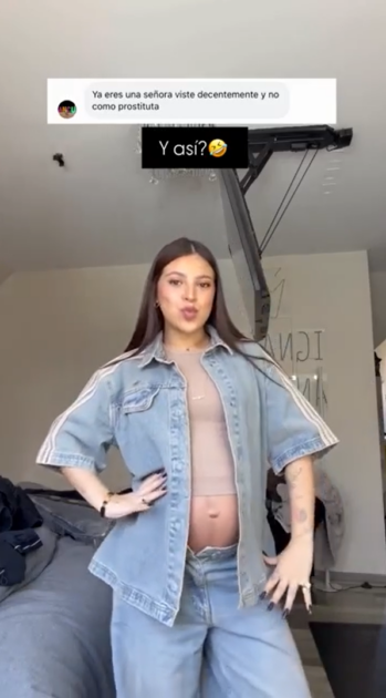 “¿Y así?”, respondió mientras posaba a la cámara, mostrando su avanzado estado de gestación.