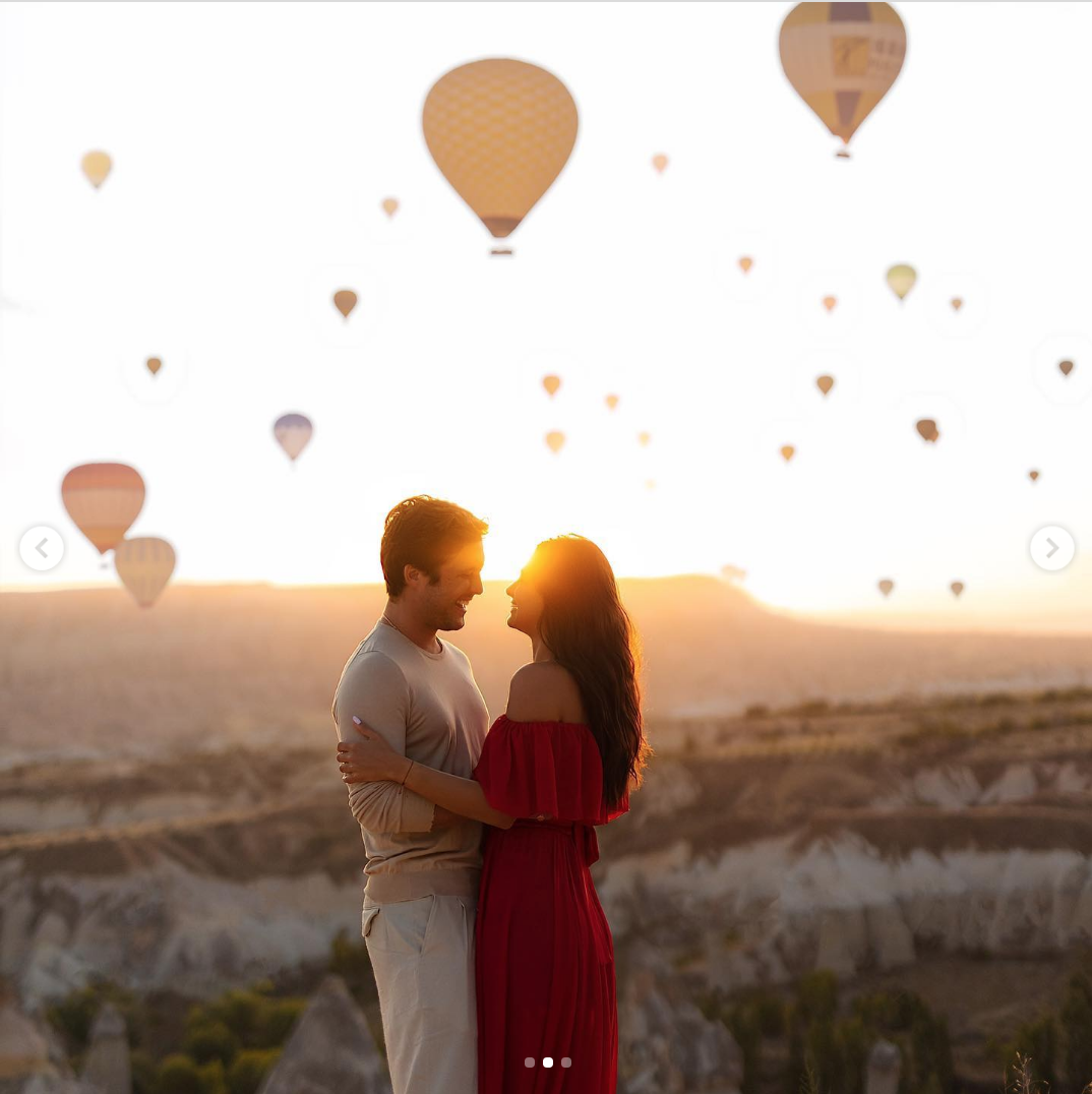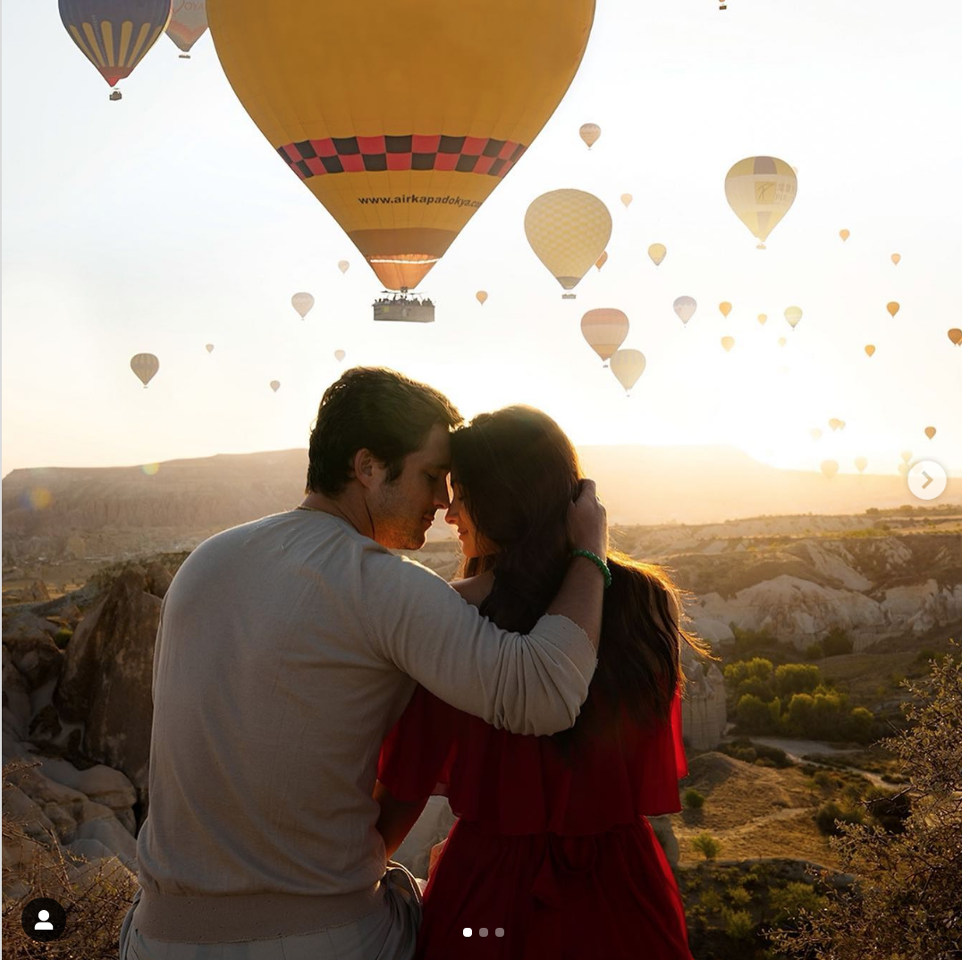 En las postales es posible ver a ambos abrazados mientras posan en una de las regiones más visitadas de Turquía, conocida por sus formaciones geológicas en forma de “chimeneas” o “conos”.