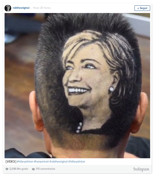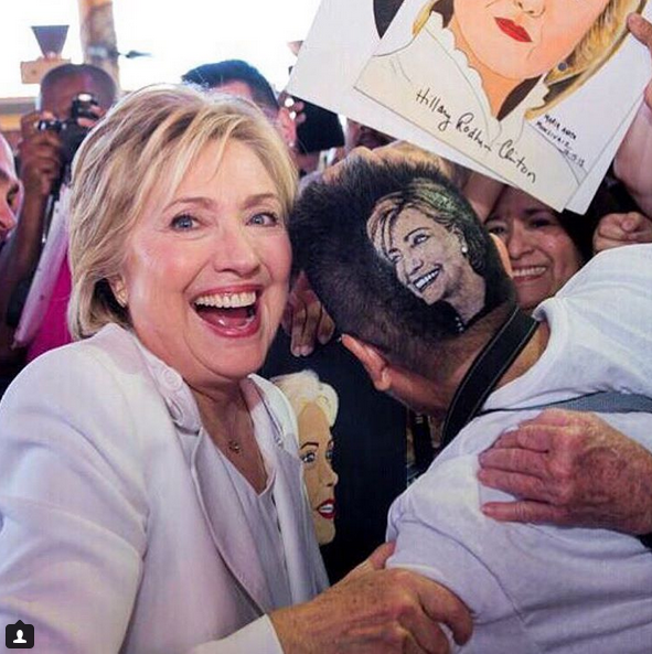 Abuela se rapó la cabeza para retratarse el rostro de Hilary Clinton
