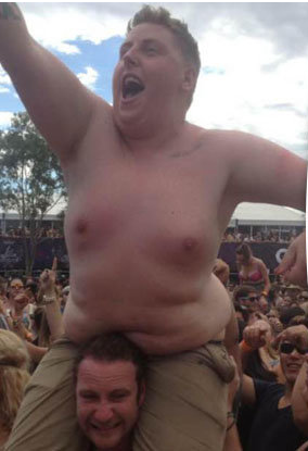 Esta es la imagen que mostraba a Paul con sus 130 kilos sobre los hombros de un amigo, tomada en marzo de 2014 en el Festival de Future Music en Australia durante sus vacaciones.