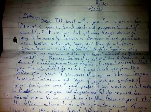 James Hunt le escribió desde prisión a Bethany solicitando permiso para que su madre pudiera ver a la menor
