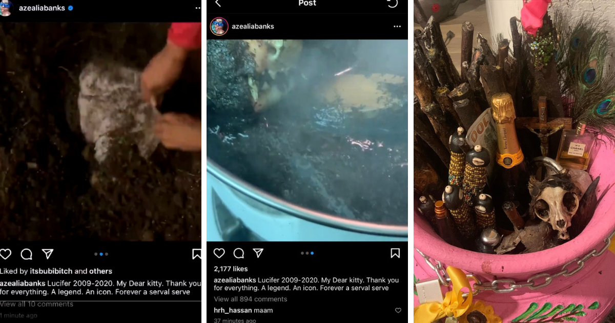 Más tarde, en 2021, la cantante publicó un espantoso video y fotos en Instagram de ella y una amiga desenterrando a su gato Lucifer, que había muerto hace 3 meses según Daily Mail, para posteriormente hervirlo en una olla con agua.