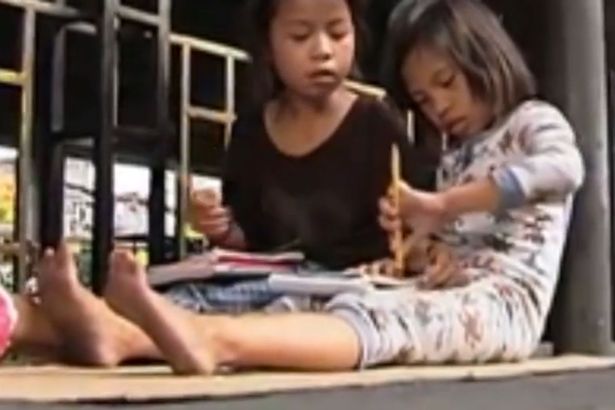 Cruda foto de una niña haciendo sus tareas en la calle conmociona al mundo
