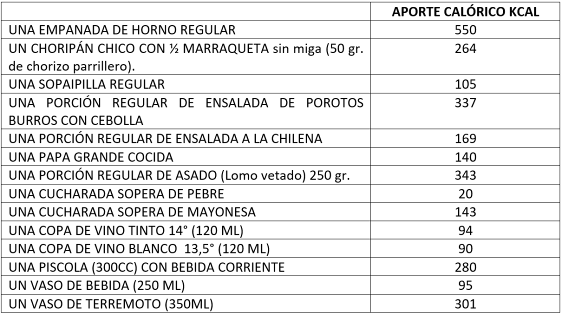 “Por ejemplo, si uno come choripán o empanada de aperitivo, se debe acompañar el asado de carne o pollo con ensaladas como la ensalada a la chilena o verduras de hojas verdes, evitando en estos casos el choclo, habas, porotos burros, papas o arroz”, ahondó.