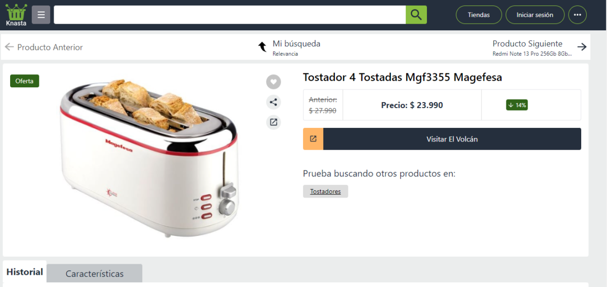 Para revisarlo, debes buscar el producto, y en la descripción, aparecerá el porcentaje que ha aumentado o disminuido su precio en un periodo específico.