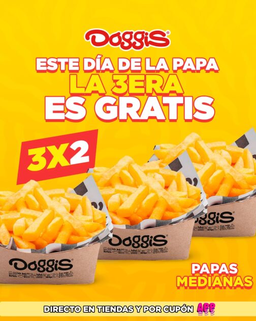Doggis mantiene un 3×2 en papas medianas, disponible desde el 18 hasta el 20 de agosto en tiendas y aplicación.